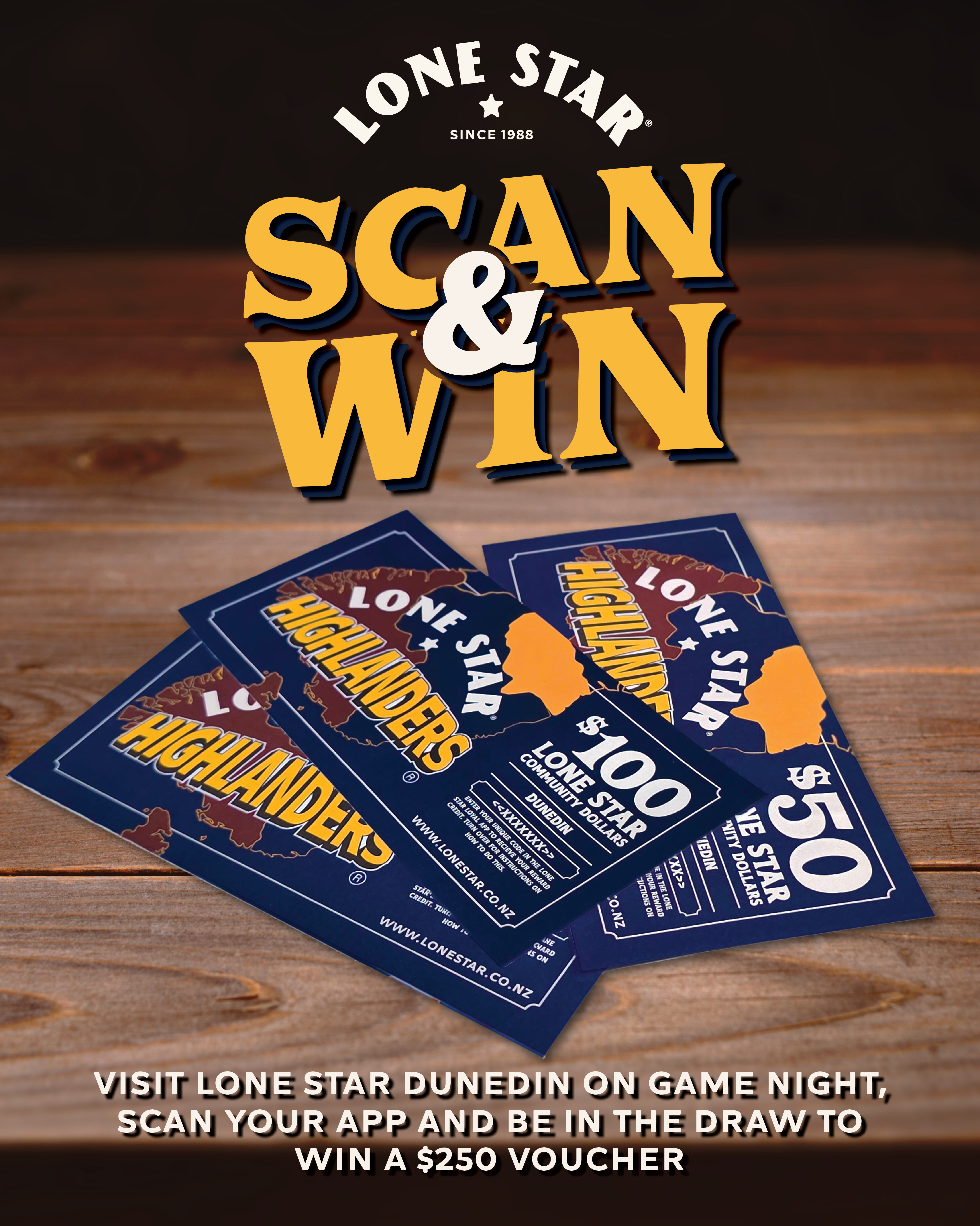 Swing by Lone Star Dunedin before the rugby, scan your Lone Star Loyal app, and you’ll go in the draw to WIN a $250 Lone Star voucher!